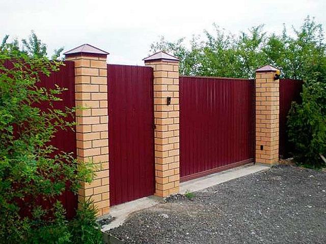 Первым делом устанавливаются угловые столбы. Они будут определять плоскости каждой из сторон забора. Устанавливаются все столбы, утрамбовываются щебнем или заливаются бетонный раствор. Каждый столб выравнивается по отвесу при помощи строительного уровня длиной 1 метр. Сами стойки фиксируются в ямах при помощи деревянных или металлических временных распорок. При бутировании, засыпке приямка, периодически проверяется отклонение столба от вертикали. Прямолинейность установки опорных стоек проверяется путем натяжки шнура между двумя крайними опорами. При идеальном расположении столбов шнур будет касаться каждой из них.